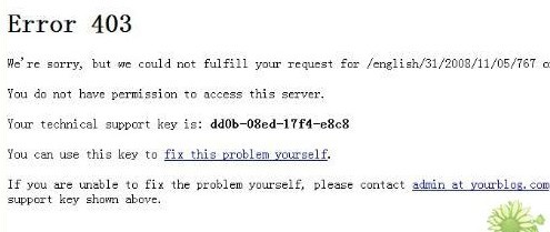 一般會出現(xiàn)以下提示:403錯誤!關(guān)閉了IE的"顯示友好的HTTP錯誤",顯示沒有權(quán)限訪問(You don’t have permission to access / on this server)!